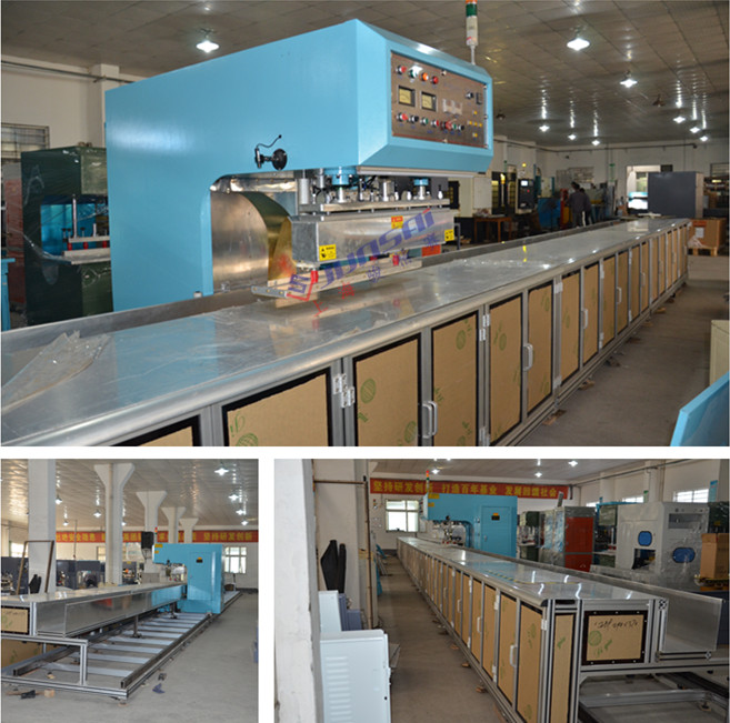 高頻電場作用于處于其電場中的塑料材料,使其發生分子融化現象,這些被融化的分子被按電場方向進行強行排列。高頻電場的快速變化,便使這些分子以同樣快速度跟隨變化。從而使該介質材料因介電損耗產生大量的熱量。這些熱量聚集、積壘會形成很高的溫度,將它熔化。 因此,我們如果將聚氯乙稀等塑料置于電極之間,并施加壓力,那么將其熔化和冷卻一段時間后,它們必然可以成形和固定下來。 利用這一特性,既可以實現高頻壓花或高頻成型,也可以將如兩塊及兩塊以上的塑料熔合粘結在一起。