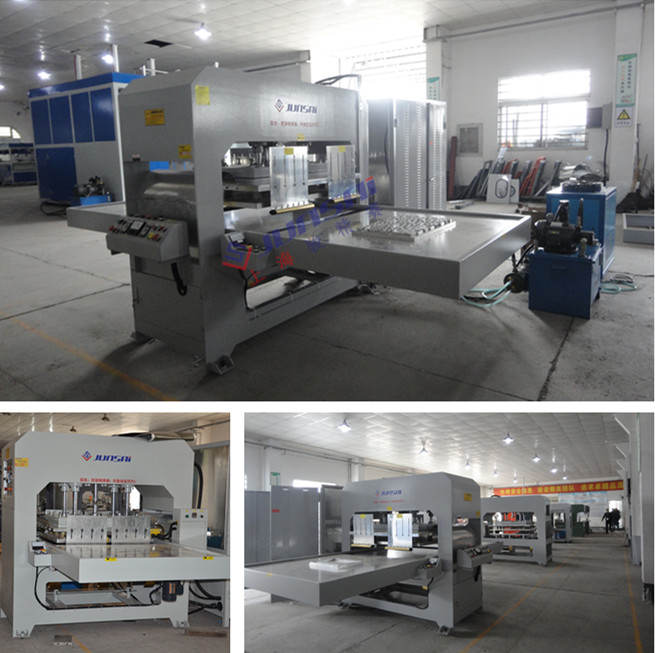 4. 高周波壓花機采用機頭,壓力輕重可任意調(diào)節(jié),設(shè)計利用肘節(jié)推動杠桿原理,能使壓力均勻,上落平穩(wěn),以配合不同熔接深淺度的需要,特別適合用于難對位產(chǎn)品。