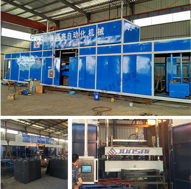 全自動厚片吸塑機 雙層棧板吸塑機的工藝過程如下:一,兩片塑料片材被放入機器內,然后壓緊進行加熱;二,加熱到需要的成型溫度后,加熱裝置縮回,模具靠攏片材,同時開啟真空系統(tǒng),進行吸塑成型;三,成型塑件在模具內冷卻定型;第四步,移出定型好的塑件,然后用CNC進行修邊、鉆孔。