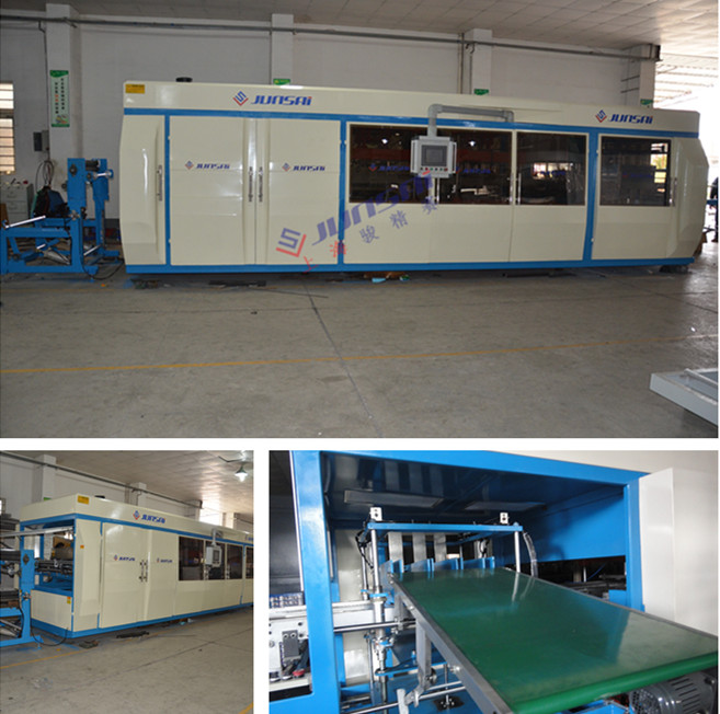 駿賽產品部新推出正負壓成型沖切一體吸塑機,該設備為吸塑加工行業節約人力成本、提供品質及提高產能奠定了先決條件。吸塑裁切一體機操作方便、結構穩固、占地面積小、通用性強,從自動上料卷到自動執行正負壓吸塑到自動沖切到人工收取成品,一個人可完成,正負壓吸塑機的運作方式在常規吸塑機基礎上在快很多,效率提升較多,使加工制品單件成本下降較多,保障了用戶的競爭力,設備可根據客戶需求定制。